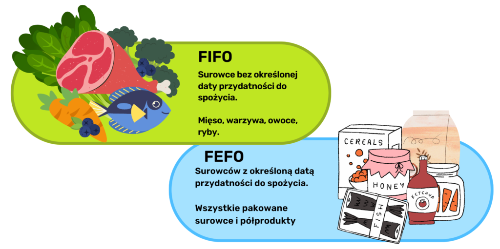 Zacznijmy od tego, że samo kupienie surowców i półproduktów zapewni pracę w danym dniu, jednak żeby praca mogła odbywać się nieprzerwanie, dostawy surowców powinny być regularne. Surowce i półprodukty magazynowane można podzielić na trwałe (np. konserwy, ziemniaki, mąka, cukier, produkty mrożone) i nietrwałe (np. mięso, ryby, warzywa). Surowce trwałe można zamawiać w większej ilości, a rzadziej, natomiast produkty nietrwałe wymagają częstszych dostaw.