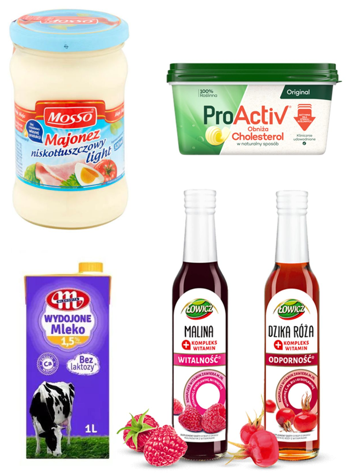 „kwasy omega – 3 wpływają na rozwój mózgu”, „sterole roślinne pomagają regulować poziom cholesterolu we krwi”, „zawiera błonnik – pomoc w trawieniu”.