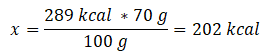 70 g – x kcal