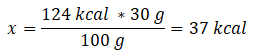 30 g – x kcal