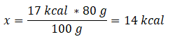 80 g – x kcal