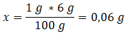 6 g – x kcal